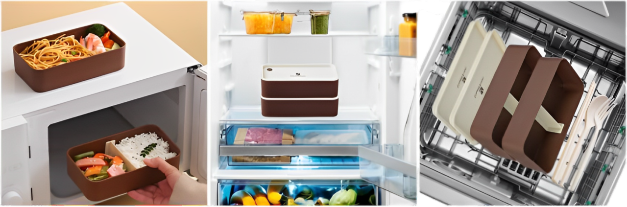 Die VandHome™ Bento Box macht alles mit! Sie ist mikrowellengeeignet zum einfachen Erwärmen, hält dein Essen frisch im Kühlschrank und lässt sich mühelos in der Spülmaschine reinigen. Perfekt für deinen Alltag – praktisch, stilvoll und funktional.
